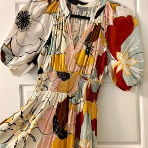 Anthropologie Floral Tiered Midi Dress in White, Yellow & Red