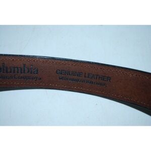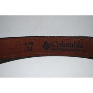 Up for sale is a vintage Columbia leather belt featuring a Southwestern / Native American–style woven print. The belt is size 32 and is used, but remains in good overall condition with normal wear.