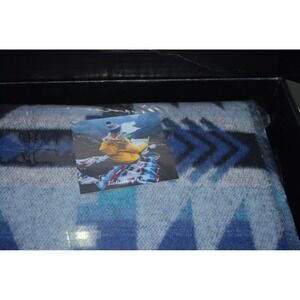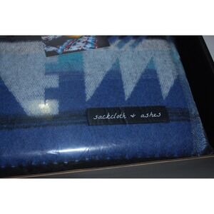SACKCLOTH & ASHES AZTEC WOOL BLANKET THROW – 59" X 70" – BLUE/GRAY/BLACK – NEW