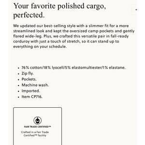J Crew camp-pocket wide-leg pant in stretch corduroy