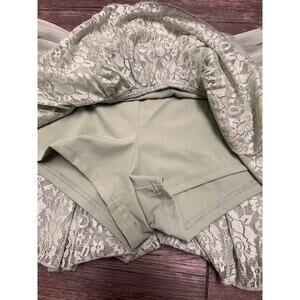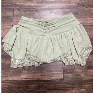 NWT Edikted sage lace layered mini skort (style S19837). Features ruched waistband, asymmetrical ruffle hem & built-in shorts. Super flattering coquette/balletcore vibe.