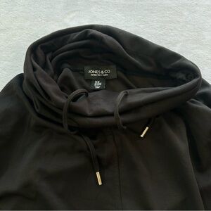 Jones & Co Black Tunic 2X Cowl Neck Buttery Soft Drawstring Long Sleeve