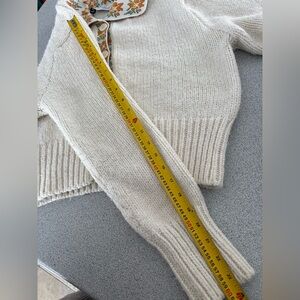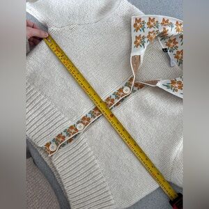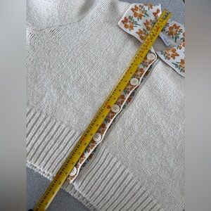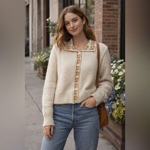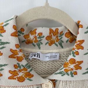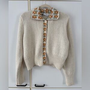 Zara Cream Knit Cardigan Floral-Trim Collar Cottagecore Women Medium Prairie