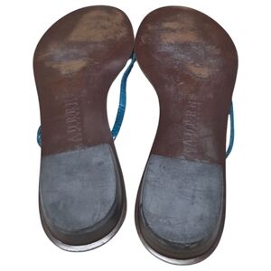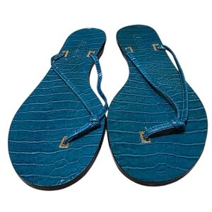 Lauren Ralph Lauren Teal Croc-Embossed Thong Sandals with Gold Accents
