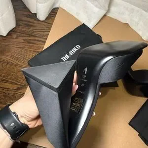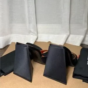 The Attico Devon Mules Black Satin Sculptural Heel EU 38