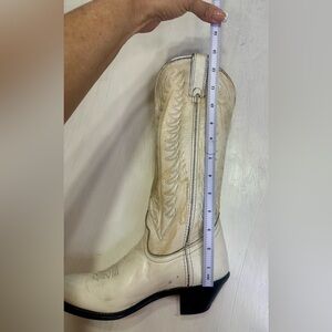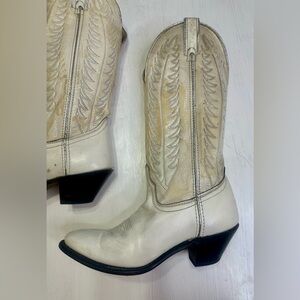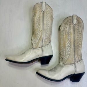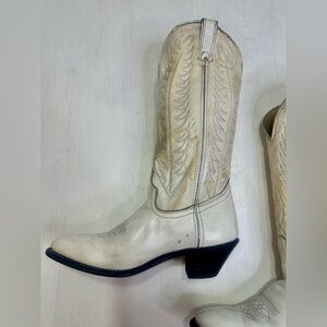 Vintage 90s Santa Fe Boot Co Cream Western Boots Womens 8.5 USA Leather