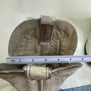 Step into authentic western style with these vintage 1990s Santa Fe Boot Co cowboy boots, proudly made in the USA. Crafted from genuine leather, these boots feature classic western stitching, a soft cream/off-white tone, and a timeless silhouette that pairs perfectly with modern and vintage looks alike.