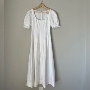 NEW Reformation Coucou Midi Linen Dress Puff Sleeves White | US 4 UK 8