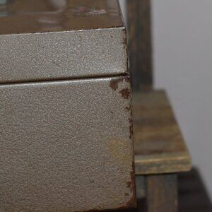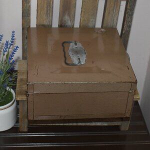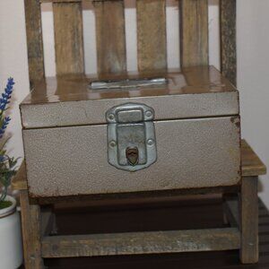 Vintage Antique Tan Metal Cash Box Porta File Case Storage Farmhouse Decor