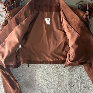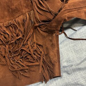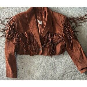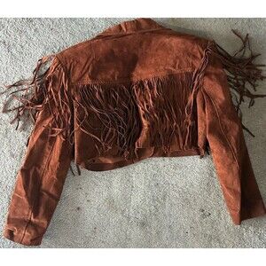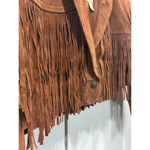 1970s Brown Suede Fringe Jacket Cropped Western Boho Leather Festival Women’s L
