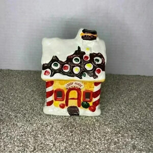 Bring charm and warmth to any room this holiday with this, Vintage JSNY Holiday Village HandPainted "Candy Gingerbread House" Candle Holder, great preowned condition. See photos, no chips or scratches.