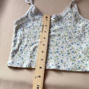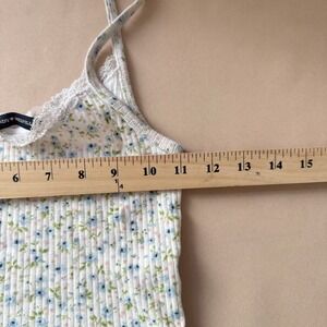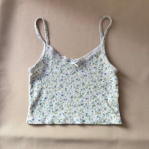 Brandy Melville White Blue Floral Lace Trim Ribbed Cotton Cami Tank Top Small