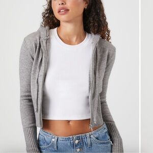 Forever 21 Cropped Grey Knitted Zip Up Sweater
