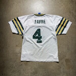 Vintage Green Bay Packers Jersey Youth Large White Green NFL Football Favre 90s