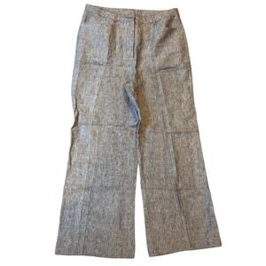 SUNDANCE Women's Striped Wide Leg Pants Size 12 Grey Gray 100% Linen Trousers