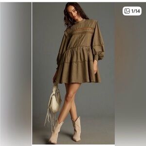 Pilcro by Anthropologie 100% cotton swiss dot mini dress in mocha/khaki/taupe. Size S.