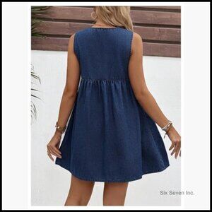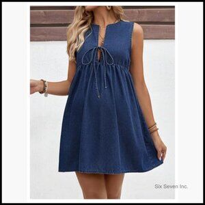 Maternity Denim Dress Sleeveless Tie Front Flowy Short Casual Sundress
