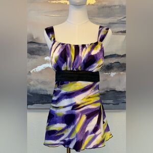 Vintage Y2K BCX Purple Abstract Babydoll Tank | Coquette Fairycore Empire Waist