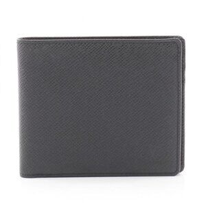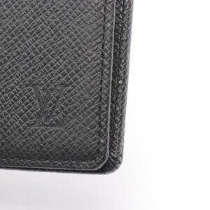 This is an authentic Louis Vuitton Bill Purse Porte Billets in Ardoise black leather. The compact wallet features the brand's iconic monogram pattern embossed on the leather, along with a sleek, minimalist design.