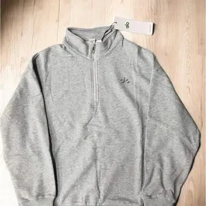 Light gray pullover with a half-zip stand collar. Soft, breathable fabric for daily wear. Subtle embroidered Alo logo on chest. Clean, minimal design that layers easily.