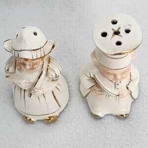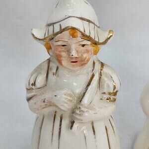 Vintage Salt Pepper Shakers 2.5" Occupied Japan Dutch Couple Baker Gold Detail