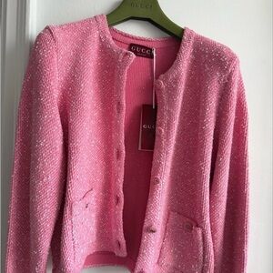 Gucci Pink Button-Front Cardigan NWT with Gucci hanger and Gucci garment bag