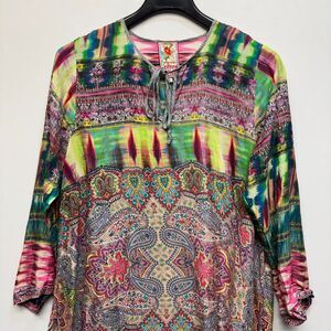 Johnny Was 3/4 Sleeve Blouse Top Shirt Size Large 100% Silk Floral Boho C095 -5