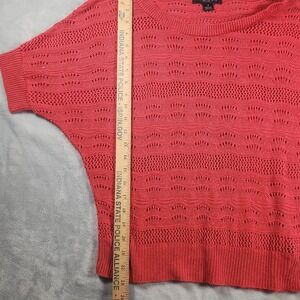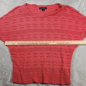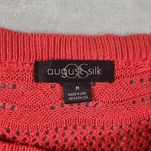 August Silk Classic Knit Top Women M Orange Short Sleeve Open Knit Designer