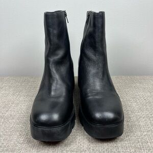 Naked Feet Xenus Platform Leather Boot Black Grunge Goth Size 8.5 Festival Chunk