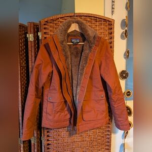 Beautiful burnt orange, fuzzily lined field jacket from Patagonia! Snap closures and pockets with a top & side entry. Only worn a handful of times, so it's basically new!