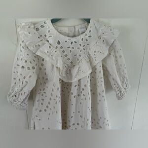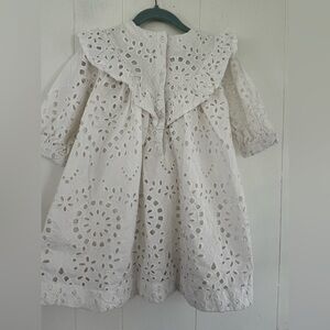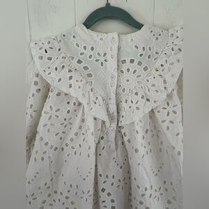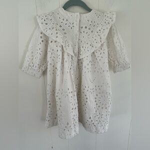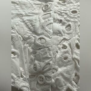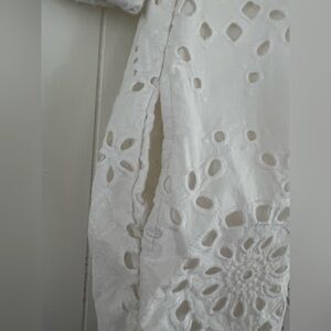 Nordstrom White Eyelet Collared Lined Dress Pockets Beach Wedding Size 5