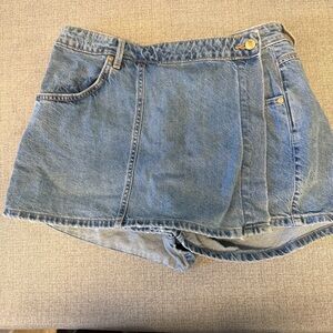 Zara Light Blue Denim Skort Shorts with Wrap Panel