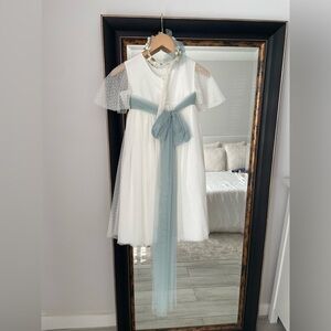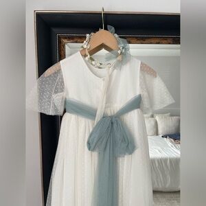 CYBERELLA BABY Ceremony Girls' Dress - Polka Dot Tulle (Aquamarine & Ivory)