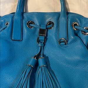 Michael Kors turquoise Blue pebble Leather Tassel Satchel Handbag