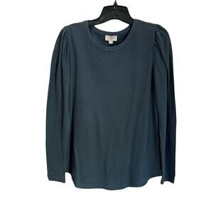 Loft Textured Slate Gray Long Sleeve Puff Sleeve Top Size Small