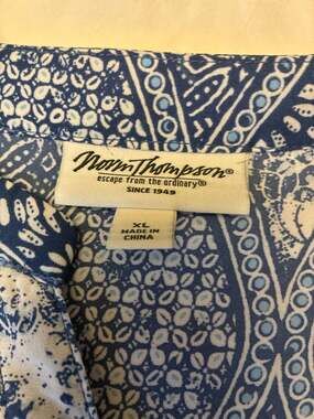 Norm Thompson XL Women's Blue and White Paisley Pattern 3/4 Sleeve Blouse