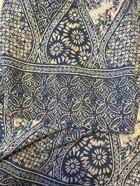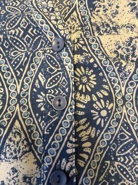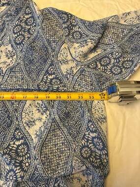 Lovely Norm Thompson blue and white paisley blouse in a women's size XL. This lightweight top features a bohemian-inspired pattern and refined 3/4 length sleeves.