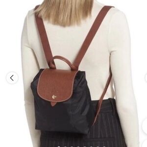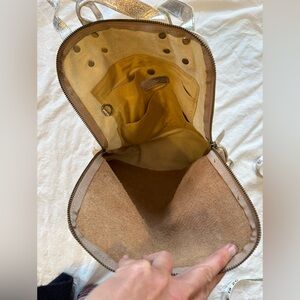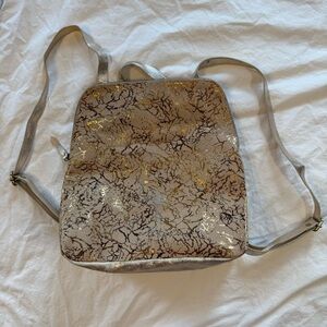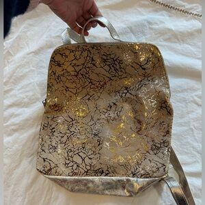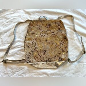 Lovely leather backpack, tan with swirls of metallic gold.