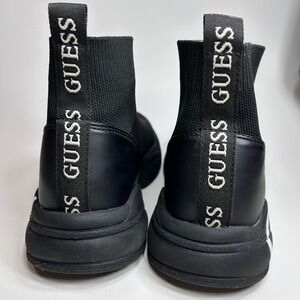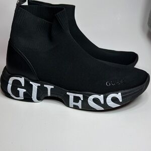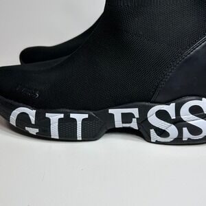 GUESS Womens 7.5 Black Knit Sock Sneakers Chunky Logo Platform High Top Shoes