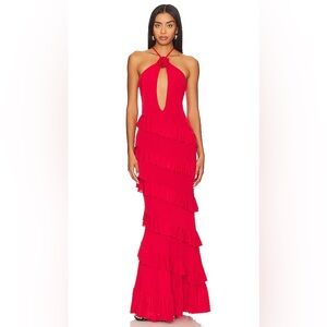 NBD Bray Maxi Bright Red Ruffled Halter Maxi Dress