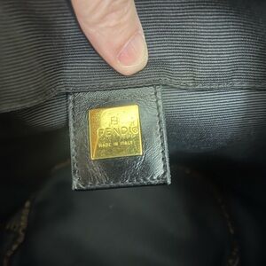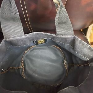 Elegant tote with Fendi logo. Features black fabric and tan accents. Ideal for daily use.