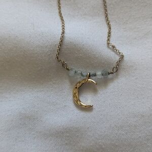 This delicate gold crescent moon necklace is accented with genuine moonstone beads, known for their soft glow and powerful meaning. Moonstone is said to symbolize intuition, feminine energy, emotional balance, and new beginnings โ the ultimate crystal for manifesting, protection, and inner calm.