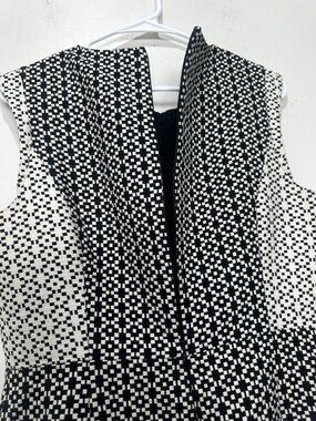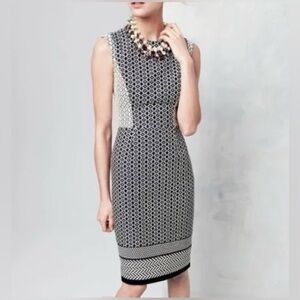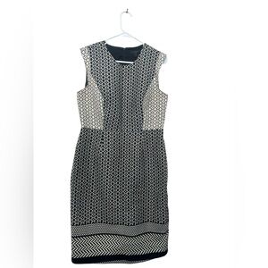 JCREW Black Label Geometric Sheath Dress Womens 10 Black Paneled Office Career Preppy Modest Church Classic Business Professional Gully Lined Sleeveless Round Neck Zip Closure