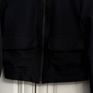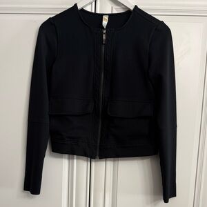 Lole Size XS Black Crew Neck Cropped Knit Bomber Jacket Zipper and Two Pockets