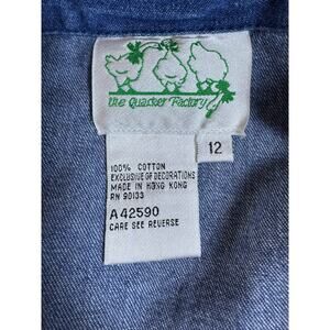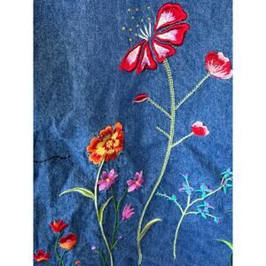 Vintage Quacker Factory Denim Jumper Dress Floral Embroidery Bee Size 12 Maxi