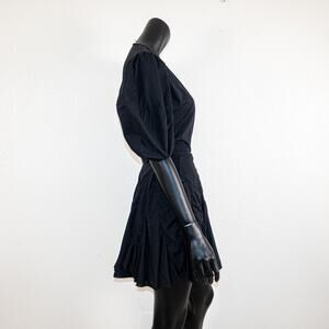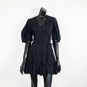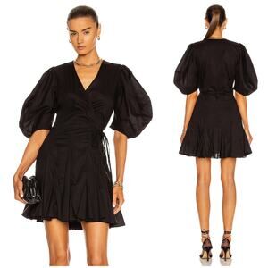 RHODE $375 Claudine Wrap Dress Puff Sleeves mini in Black XS
