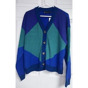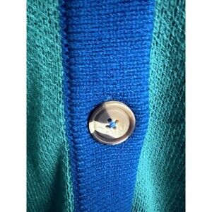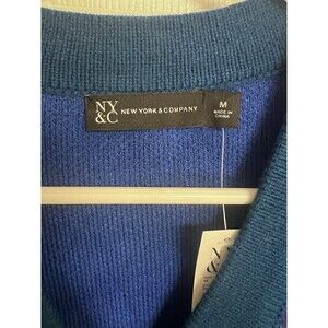 New York & Company Color Block Women's Sweater Cardigan M Medium Blue Green