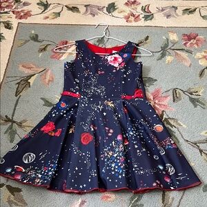 Disney Store Limited Edition Rapunzel gown, one of only 2,000 made. Size 6. Features a purple/lavender ball gown with pink sheer organza puff sleeves with gold trim piping, embroidered purple bodice with teal sequin details, pink satin lace-up ribbon corset front, gold lace collar trim, and a full purple tulle skirt with glitter floral vine embroidery and 3D pink flower appliqués. Back lace-up closure. Great for dress-up, Halloween, or Disney events!
