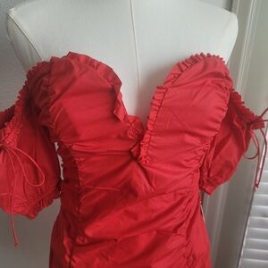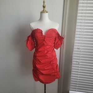 For Love & Lemons Jackson Red Ruched Off-the-Shoulder Mini Dress Size Small Red