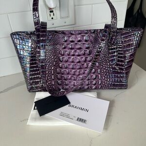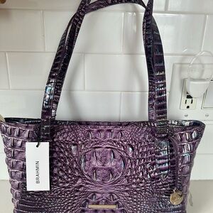 Brahmin Tonya Iridescent Passion Purple Croc-Embossed Leather Tote